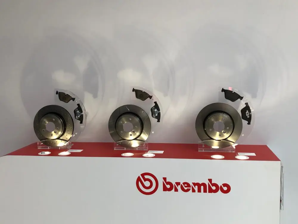 Brembo's 95 m2 stand emphasized the four main families in the Aftermarket product families: the X range, which includes drilled Xtra discs, slotted Max discs and Xtra pads, standard pads equivalent to the original, the range of two-piece discs, dedicated to prestige cars and, last but not least, the hydraulic range with the new brake caliper repair kit.