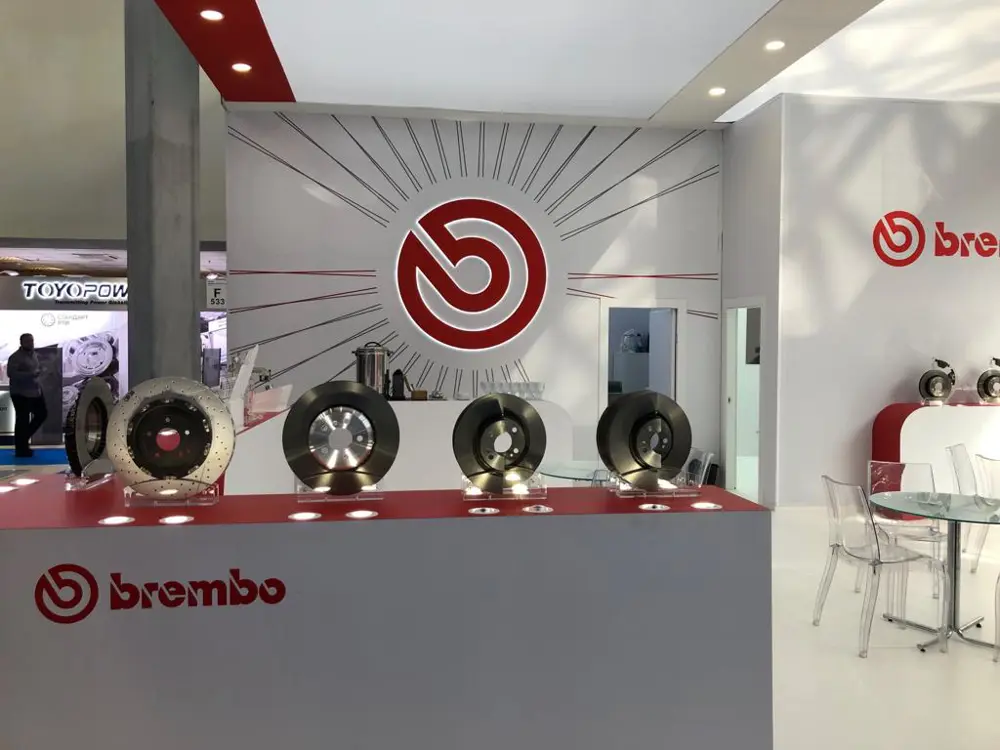 Lo stand Brembo di 95 mq valorizza le quattro principali famiglie di prodotti Aftermarket: la gamma X, costituita dai dischi forati Xtra, baffati Max e dalle pastiglie Xtra, le pastiglie standard equivalenti all’originale, la gamma di dischi a due pezzi, dedicata alle auto di prestigio e, infine, la gamma idraulica con il nuovo kit di riparazione per pinze freno.